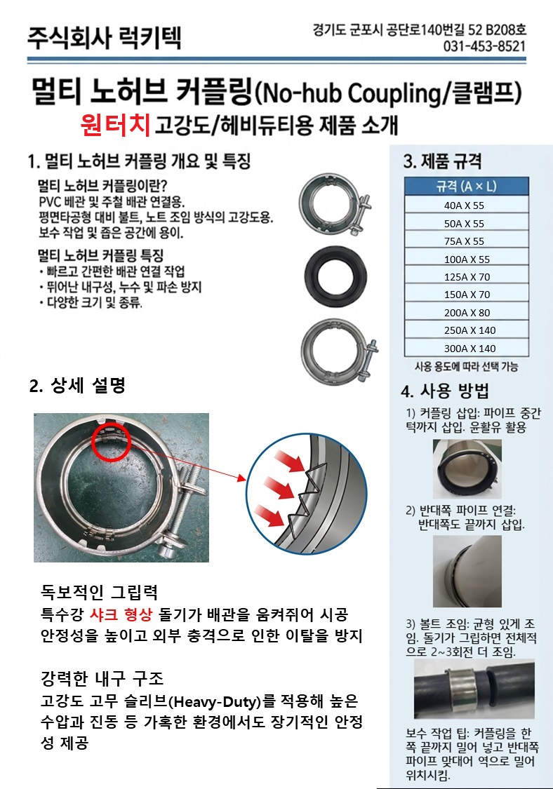 노허브 커프링.몰코아답터.입상관고정구